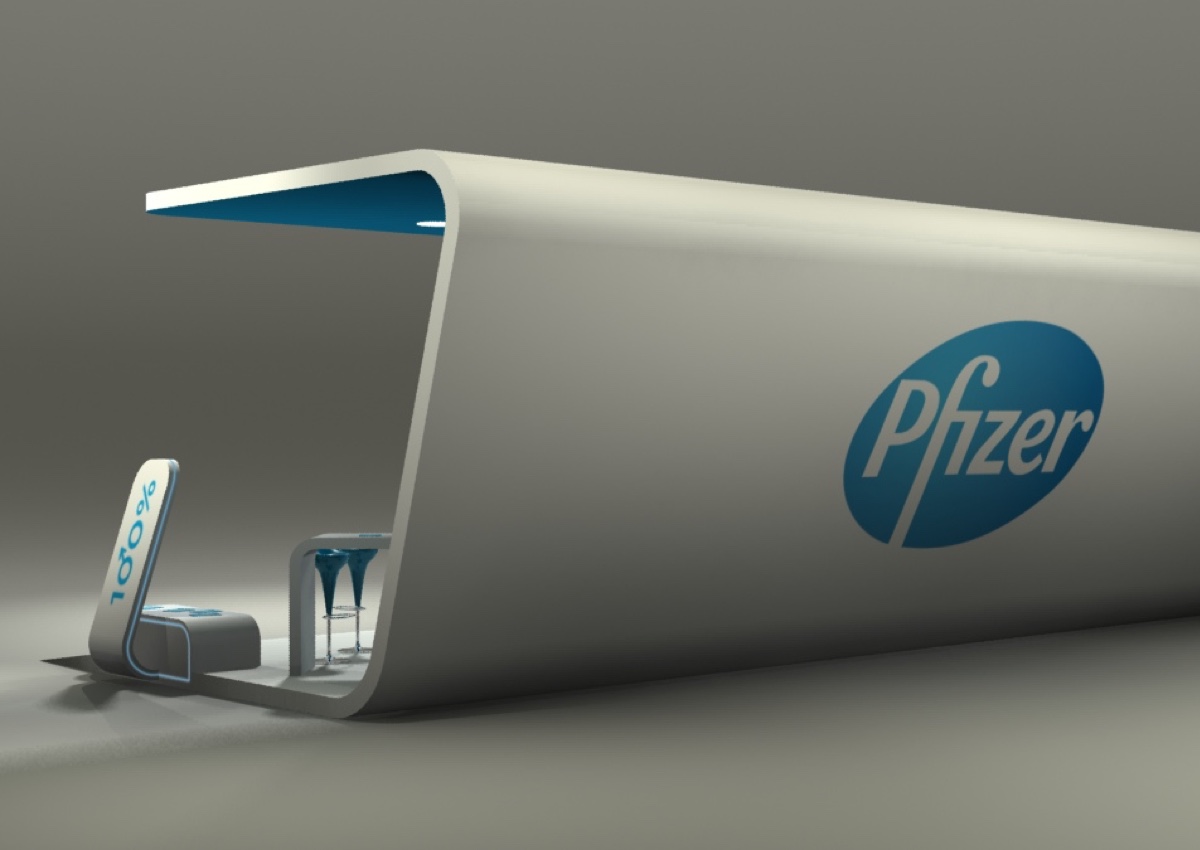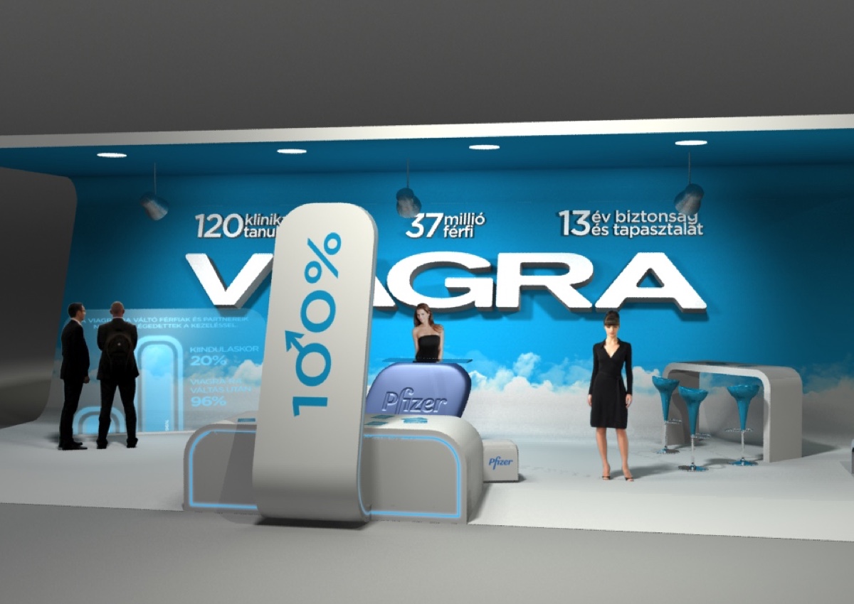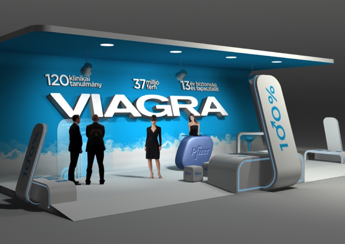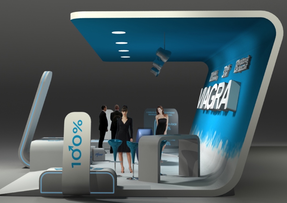 We have prepared a stand design. Made of an unfolded Viagra box for a medical exhibition